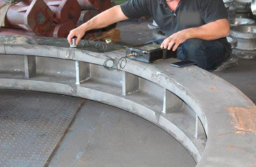 Inspetor realizando END (Ensaio Não Destrutivo)